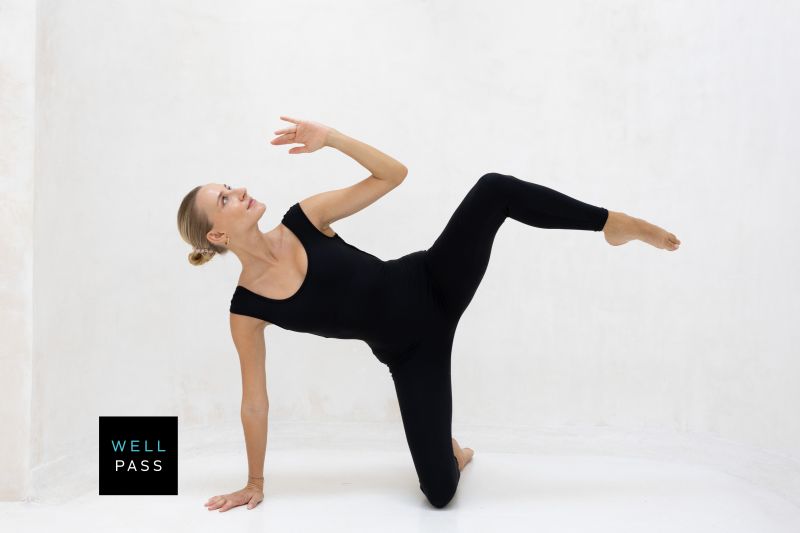 - klassische Pilates Übungen mit sportlichen Elementen, mithilfe von Gewichten, Bällen oder Bändern